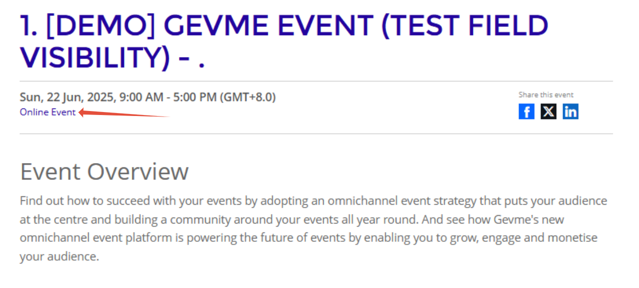 e.g. https://admin.gevme.com/company/abc/project/62fba899fb080a003b41db9c/dashboard/overview - Choose Others for other virtual platform that you are using; and simply paste the URL