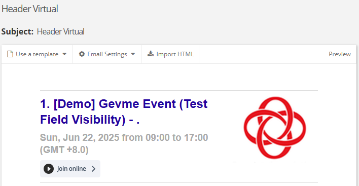 A specific Call-to-Action (CTA) button Gevme Live can be added to email templates and linked directly to the Gevme Virtual Live Page. Additionally, a flag can be enabled to generate a magic link, allowing attendees to access the Live Page without needing to log in.