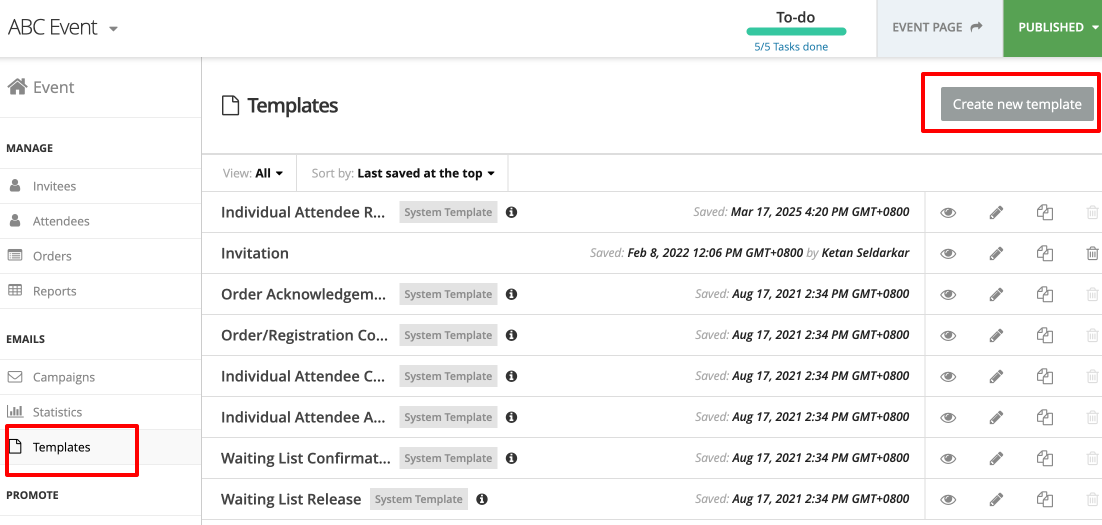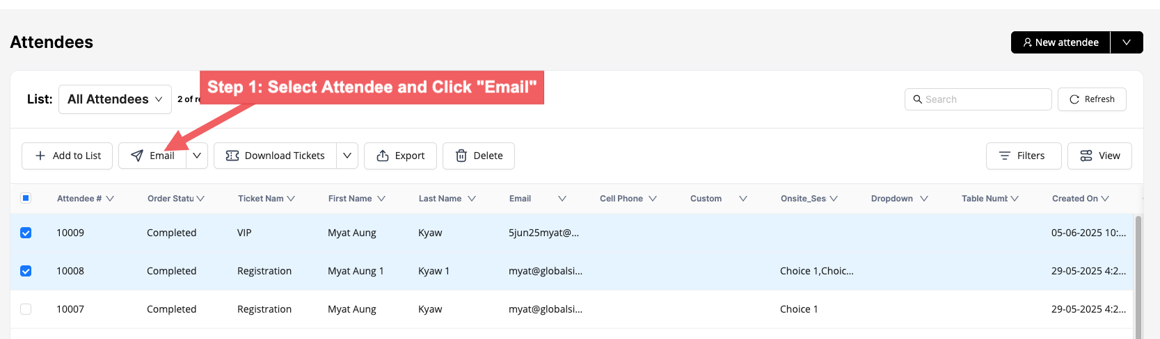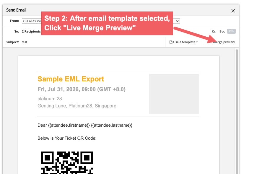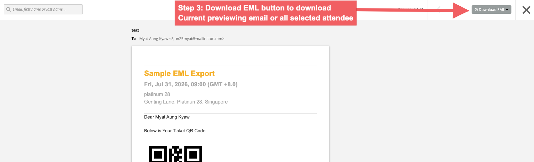 You can export email templates for individual attendees or all selected attendees for use in external tools.