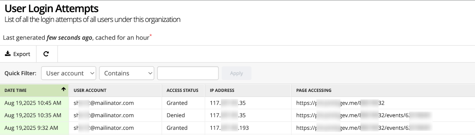 Previously, the User Login Attempts Report recorded login activity at a general login stage, which sometimes resulted in mixed or confusing data for users with access to multiple organisations. With the enhanced feature, the system now captures and logs user activity based on the first accessed URL within the organisation’s backend environment.