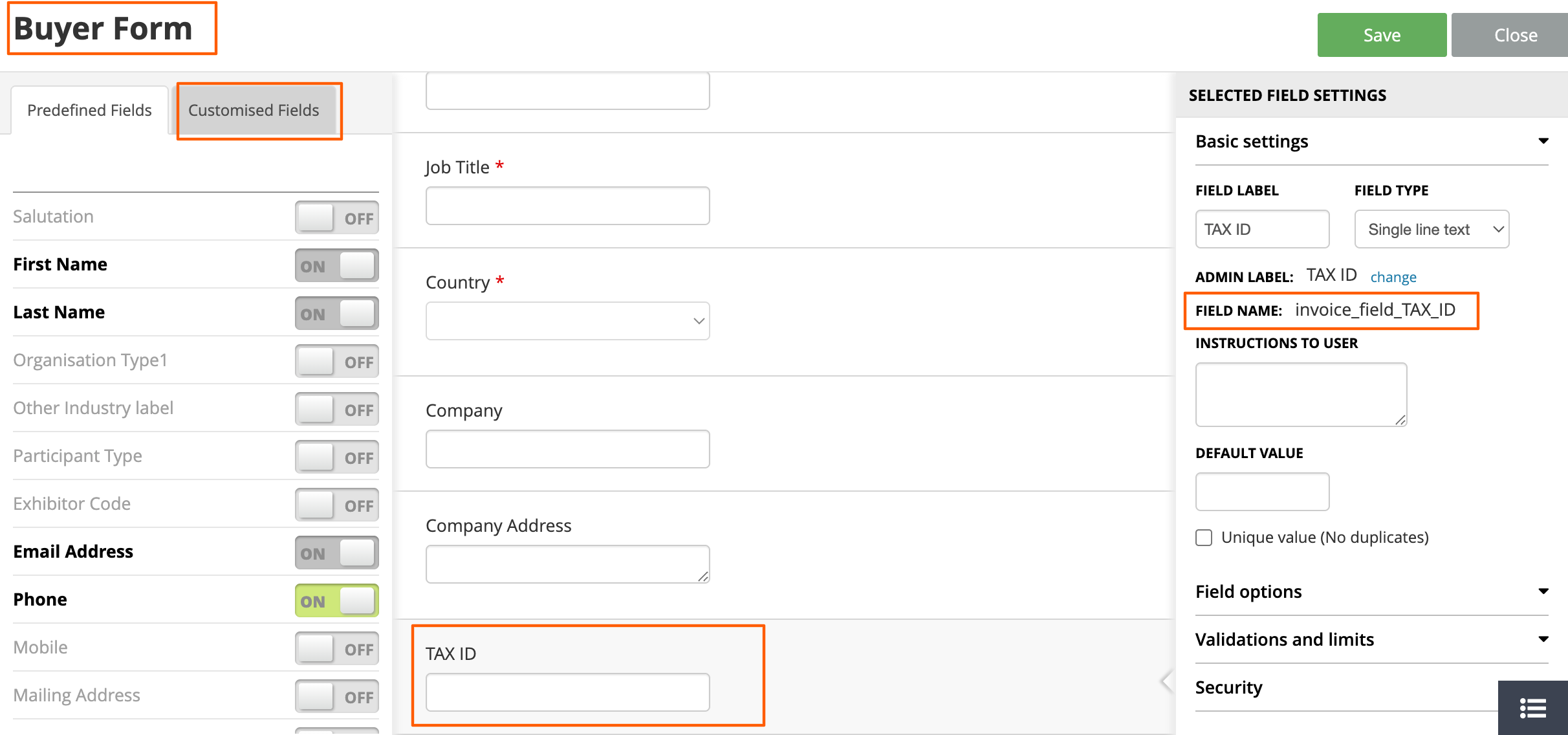 - Identify Required Custom Fields: Determine which tax or additional fields your buyers require on their invoices.