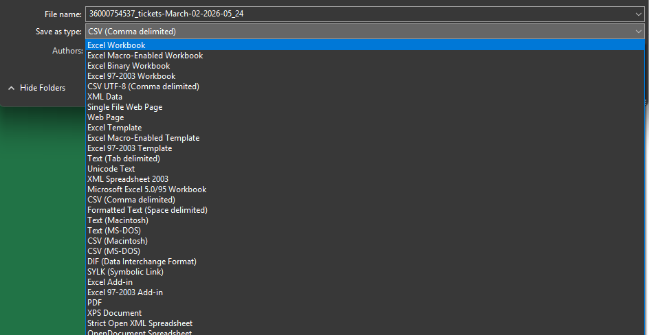 ◦ Excel: .xlsx