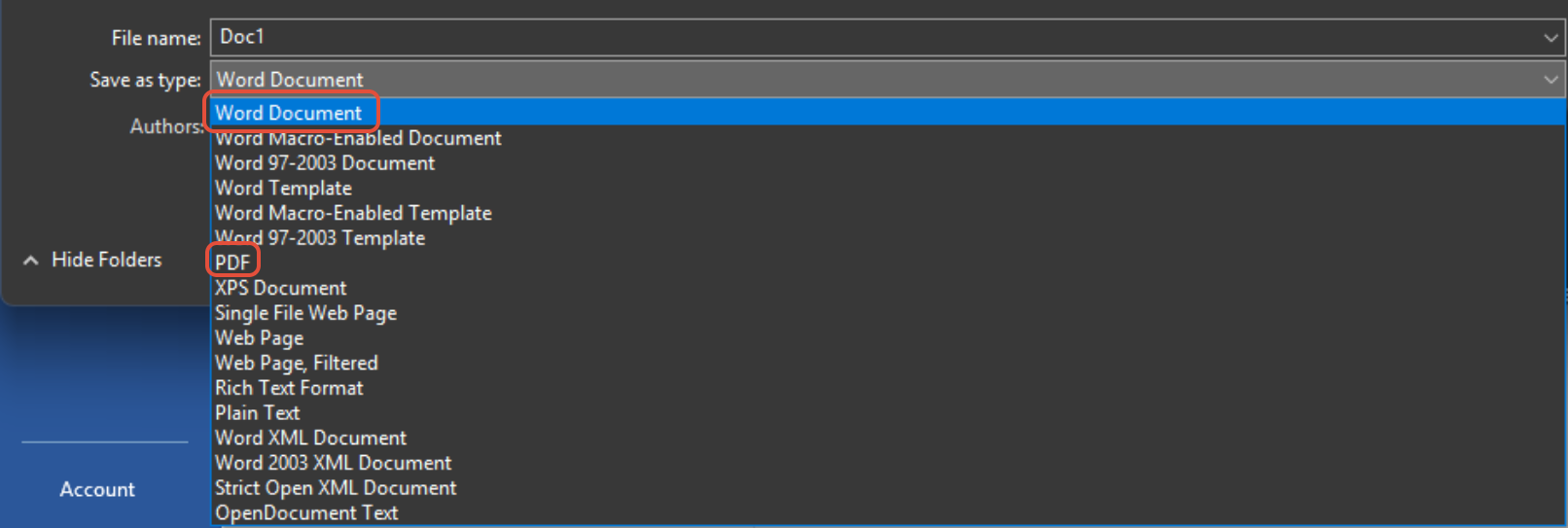 - Word: .docx