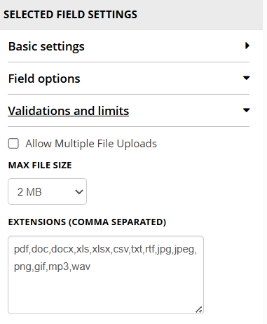 Field Type: File![]() | Outdated Extensions![]() |